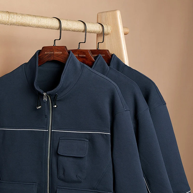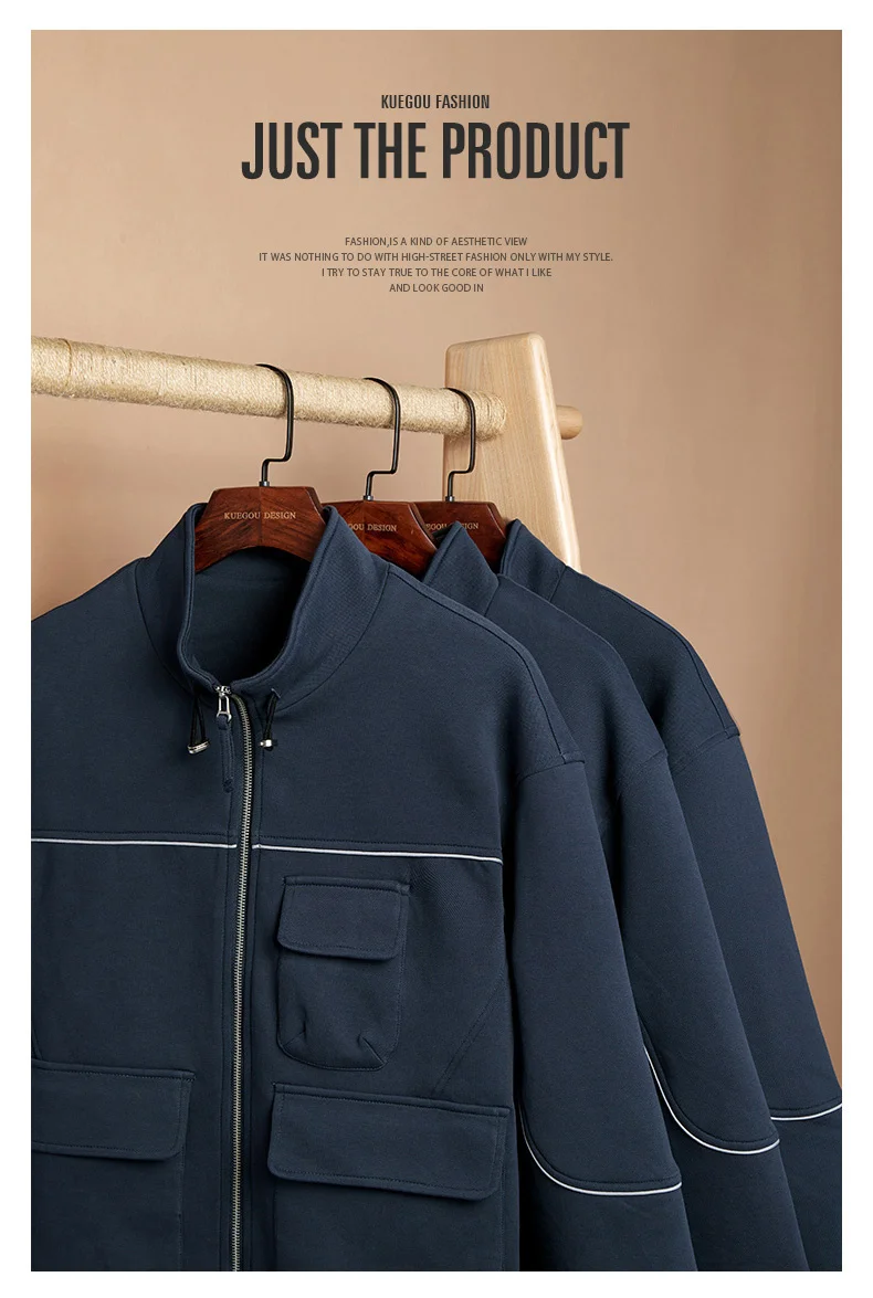 KUEGOU, весна 2019, синяя Повседневная куртка на молнии, мужская верхняя одежда, Японская уличная одежда, Тактическая Военная винтажная одежда, 8827