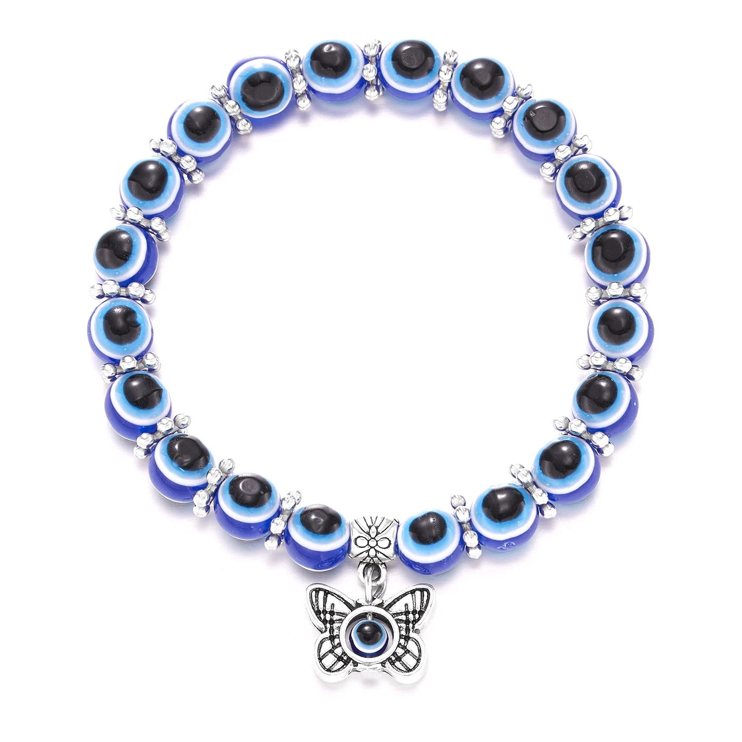 Турецкий счастливый злой глаз браслеты ГОЛУБЫЕ злые глаза 8 мм бисерная цепочка ручной работы животное кулон браслеты ручной работы Lucky Дружба Ювелирные изделия