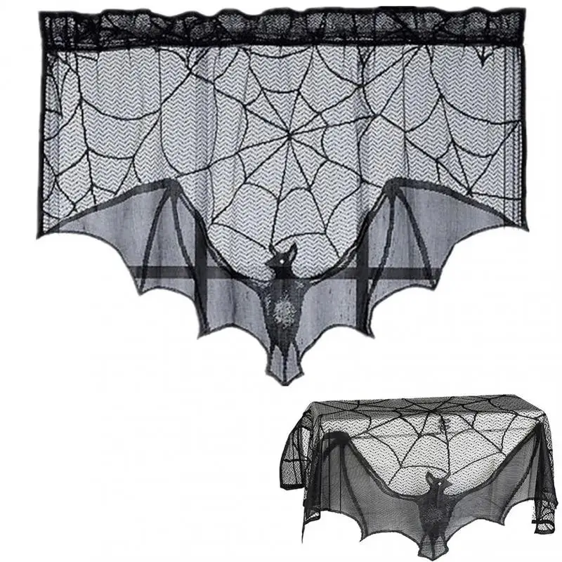 Хэллоуин декоративные летучие мыши шторы черный кружево паутина Праздничная плита полотенце абажур камин ткань декор для жуткого фестиваля