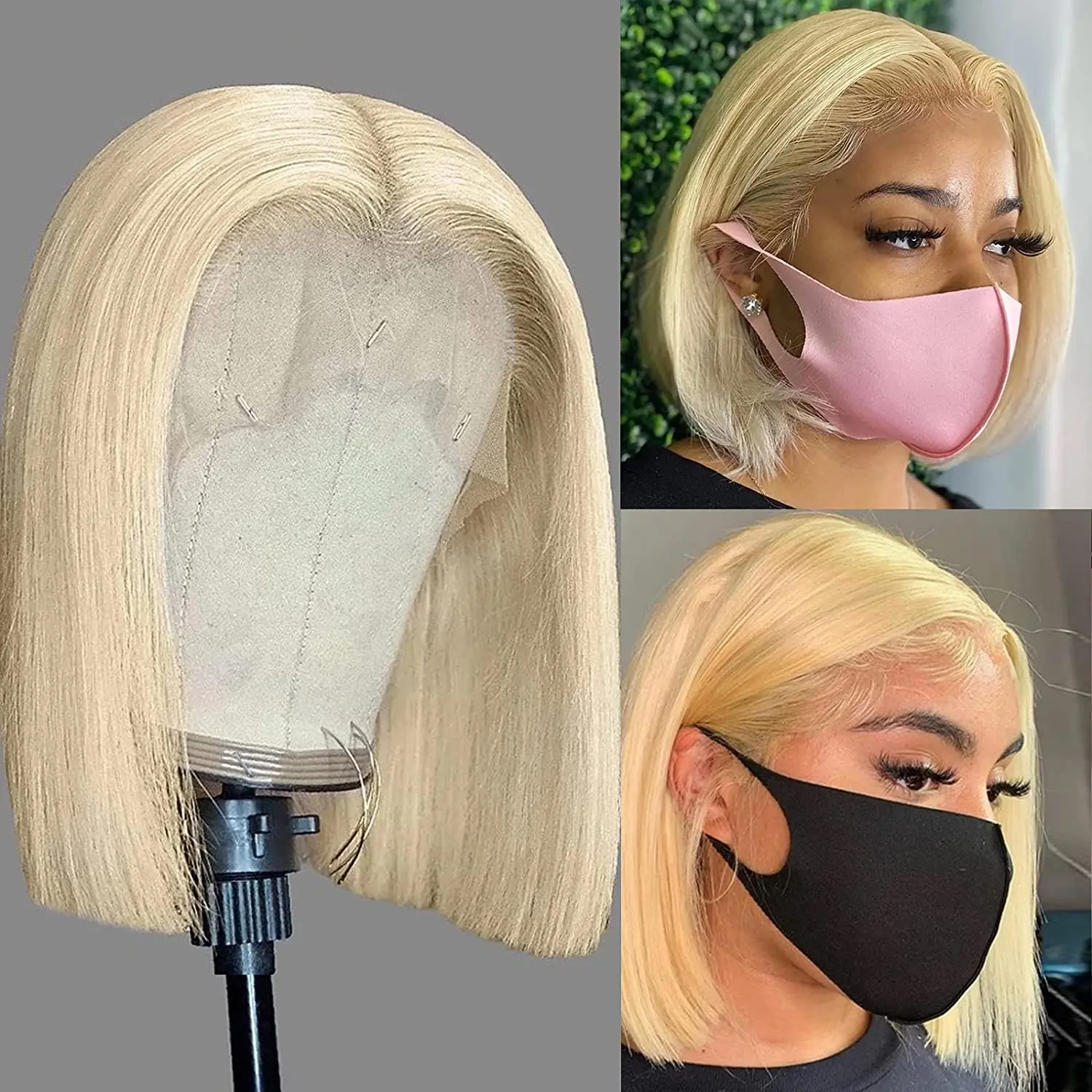 613 парики блонд Боб из человеческих волос на сетке, парики 4x4 на сетке спереди, парики блонд Боб, бразильские прямые волосы средней части, боковая часть, парик Боб