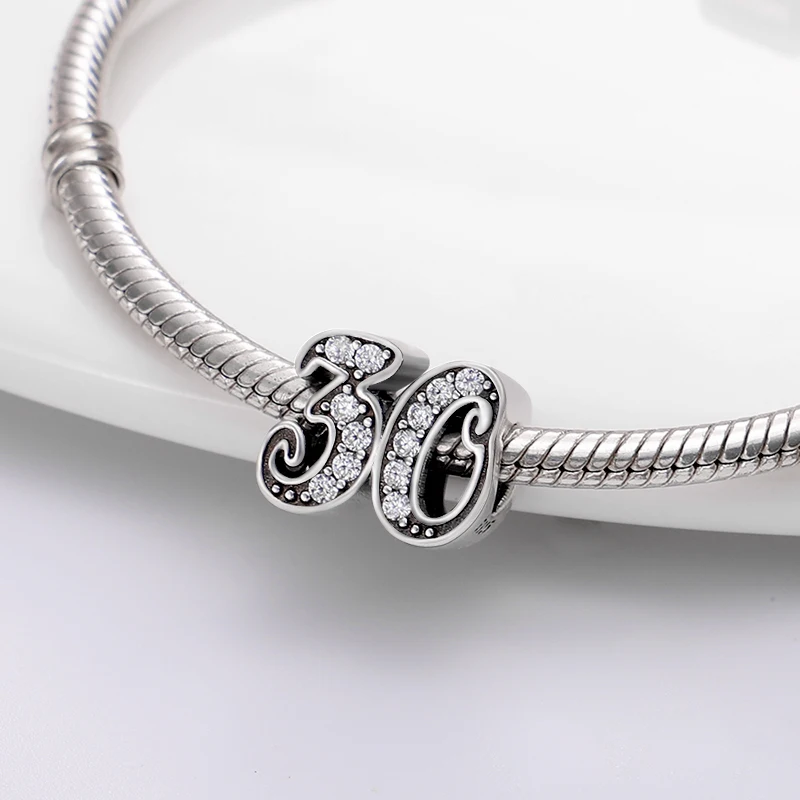 Новинка 925 серебро Подходит для оригинального браслета Пандора Ожерелье циркониевые арабские цифры бусины серебряные подвески женские изящные ювелирные изделия подарок