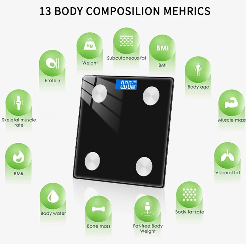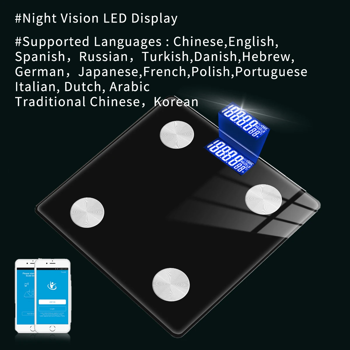 Беспроводные цифровые весы для ванной, анализатор индекса массы тела, жира, с приложением для смартфона, Bluetooth