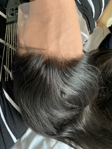 Фронтальная Футболка тонкая и облегающая. Продавец говорит, что она ручной работы и позволяет хорошо разделяться. Но он выпадает. Нет никакой плотности, поэтому, когда вы разделите волосы, это будет иметь большой зазор. Продавец заботится только о своей продукции, а не о качестве. Передняя часть не продержится долго.
