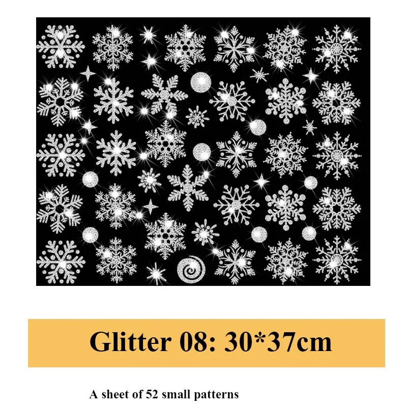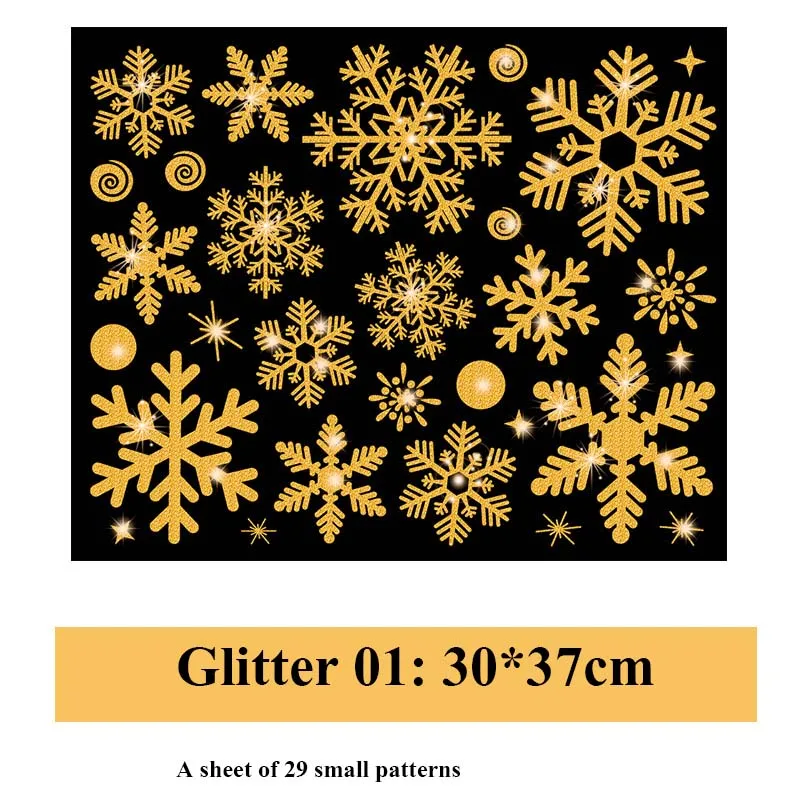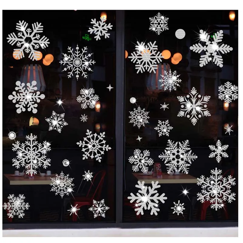 1 шт. рождественские наклейки на окна, блестящая золотая розовая Снежинка, статическая Наклейка на стекло с электричеством, новогодняя Наклейка на стену, украшение для дома