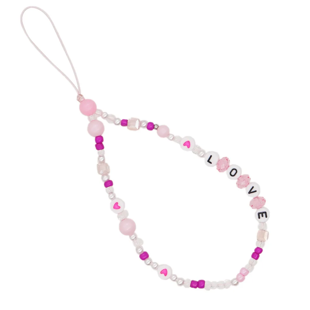Цепочка Женская акриловая, с искусственным жемчугом и черными круглыми бусинами, мобильный телефон