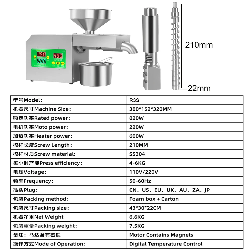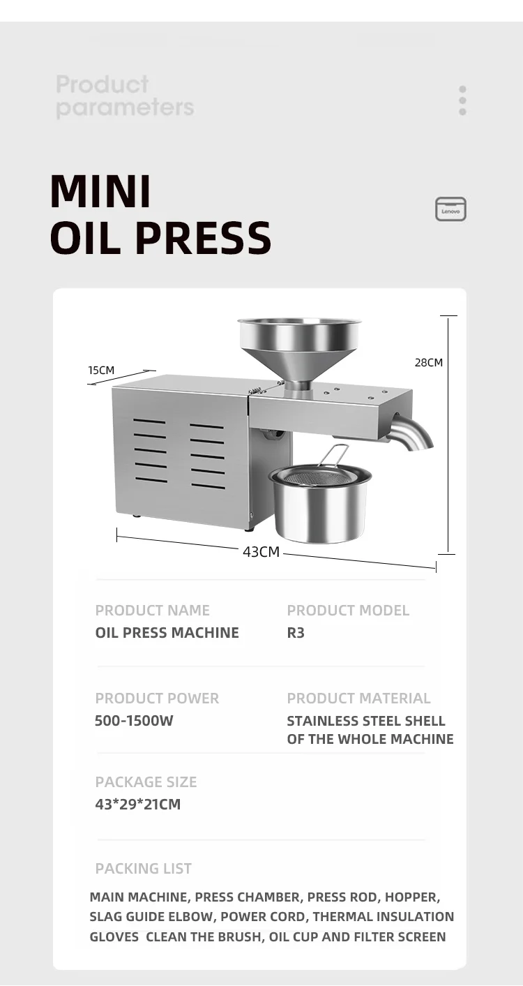 Автоматический умный Масляный Пресс R3S для дома, пресс для горячего и холодного масла из нержавеющей стали, кокосовое ядро, оливковое ядро, арахис