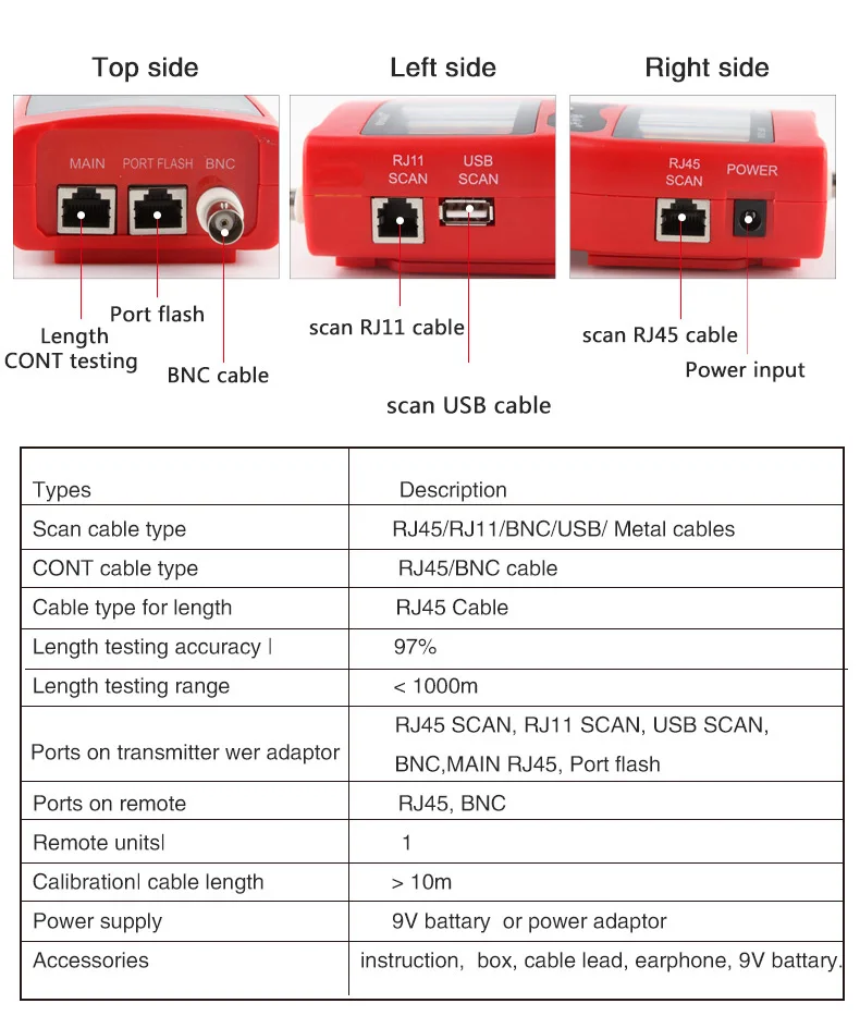 NOYAFA стандартное измерение сетевого кабеля LAN, длина кабеля, проверка целостности цепи, проводной трекер RJ45 RJ11 Ethernet USB BNC, тестер кабеля