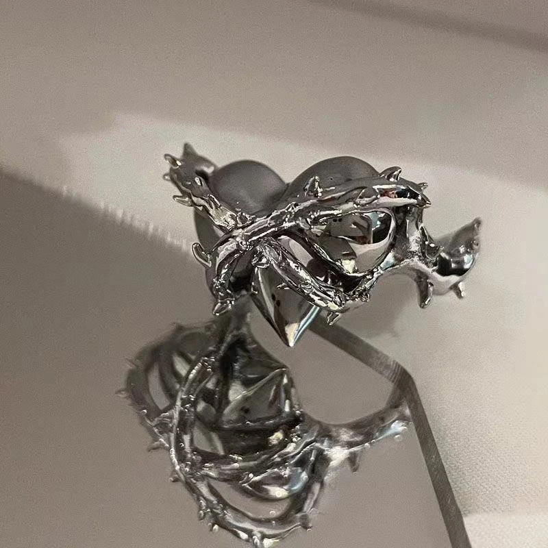 Опишите:Готическое женское кольцо с сердечком, корейское модное креативное Открытое кольцо, унисекс, панк, хип-хоп, вечерние, подарок на Рождество, день рождения, ювелирное изделие