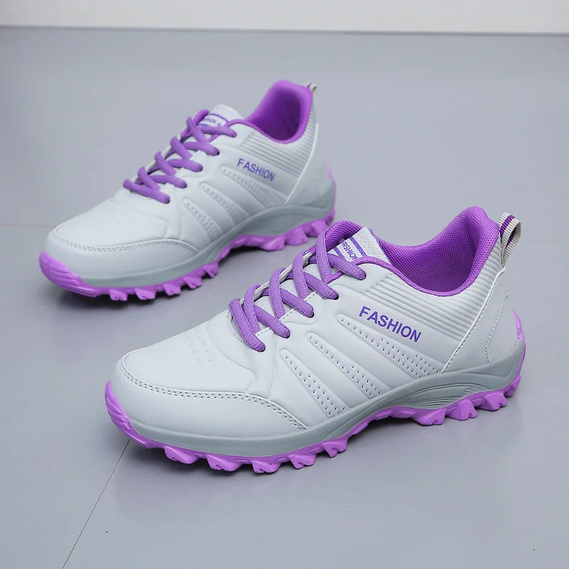 Женские кожаные спортивные туфли, повседневные Нескользящие кроссовки на платформе, дышащая легкая обувь для бега на осень и зиму