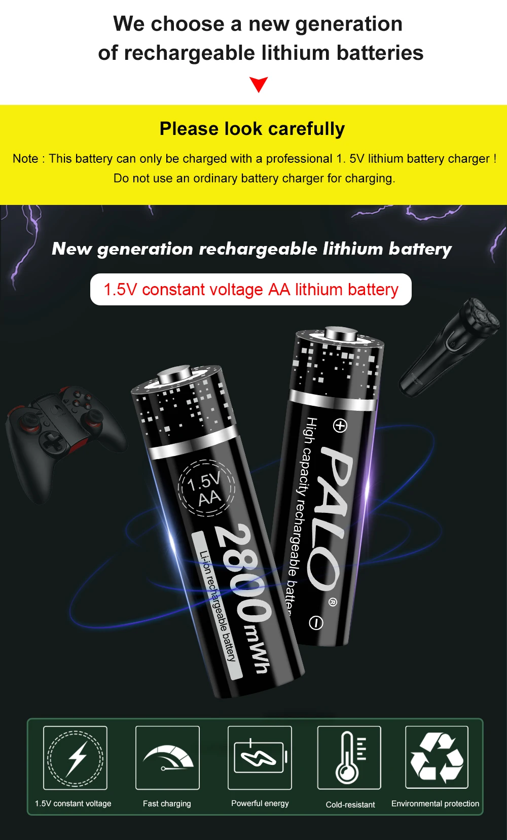 PALO 1,5 V AA 2800mWh литий-ионный Батарея 1,5 v AA Перезаряжаемые ...