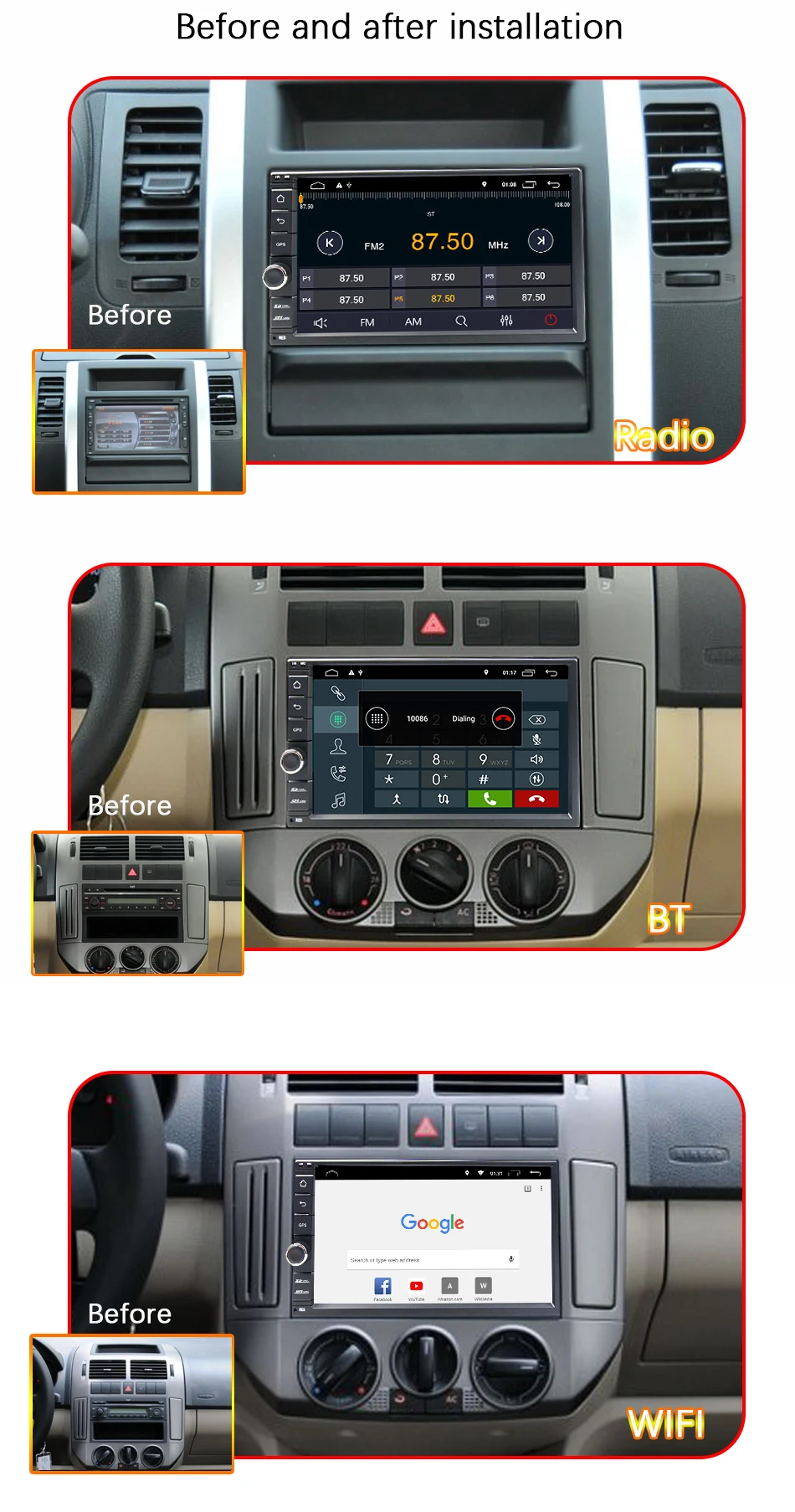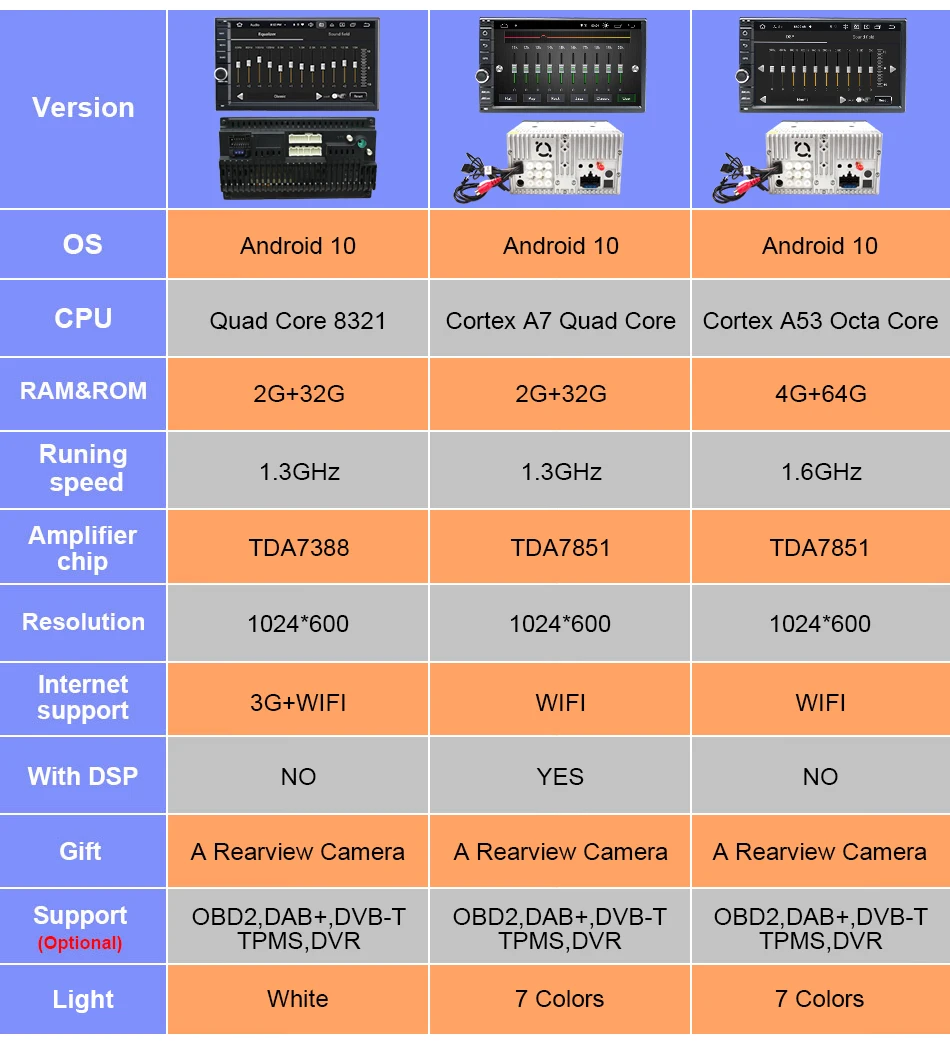 О нашем сервисе --- нажмите hereNote: этот блок не имеет движения dvd и не может воспроизводить диски dvd1. Чистый android 10,0 емкостный сенсорный экран 1024 * 600px hd2. Процессор: cortex a7 quad core3.2gb + 16gb4. Встроенный wifi5. Телефонная книга search6. Поддержка управления рулевым колесом (Если ваш автомобиль имеет его) 7. Функция зеркального соотношения. Передача информации на экран на мониторе автомобиля 8. Поддержка obd, obd (elm327) является необязательной, 9. Радио тюнер с rds, 30 предустановленных радиостанций (fm: 3*6, am: 2*6)10. Кнопочный светильник с регулировкой цвета 7 кнопок, свободно меняйте один на anothe11. Язык osd: английский/русский/французский/немецкий/испанский/итальянский/арабский/Португальский/Турецкий/тайский/Польский/иврит и т. д. более 20 видов языков 12. Поддержка цифрового ТВ cmmb (опционально) 13 Поддержка dvr (опционально) 14. Поддержка tmps (опционально) 15. Wcdma 3g поддержка интернет-серфинга (опционально)