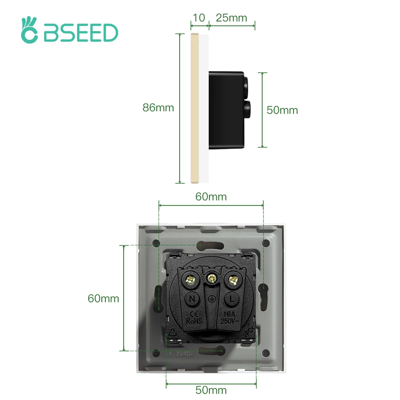 Bseed Mvava, Франция, Польша, стандарт 16A, электрическая настенная розетка, белый, черный, золотой, однокристальная панель, розетка, розетки