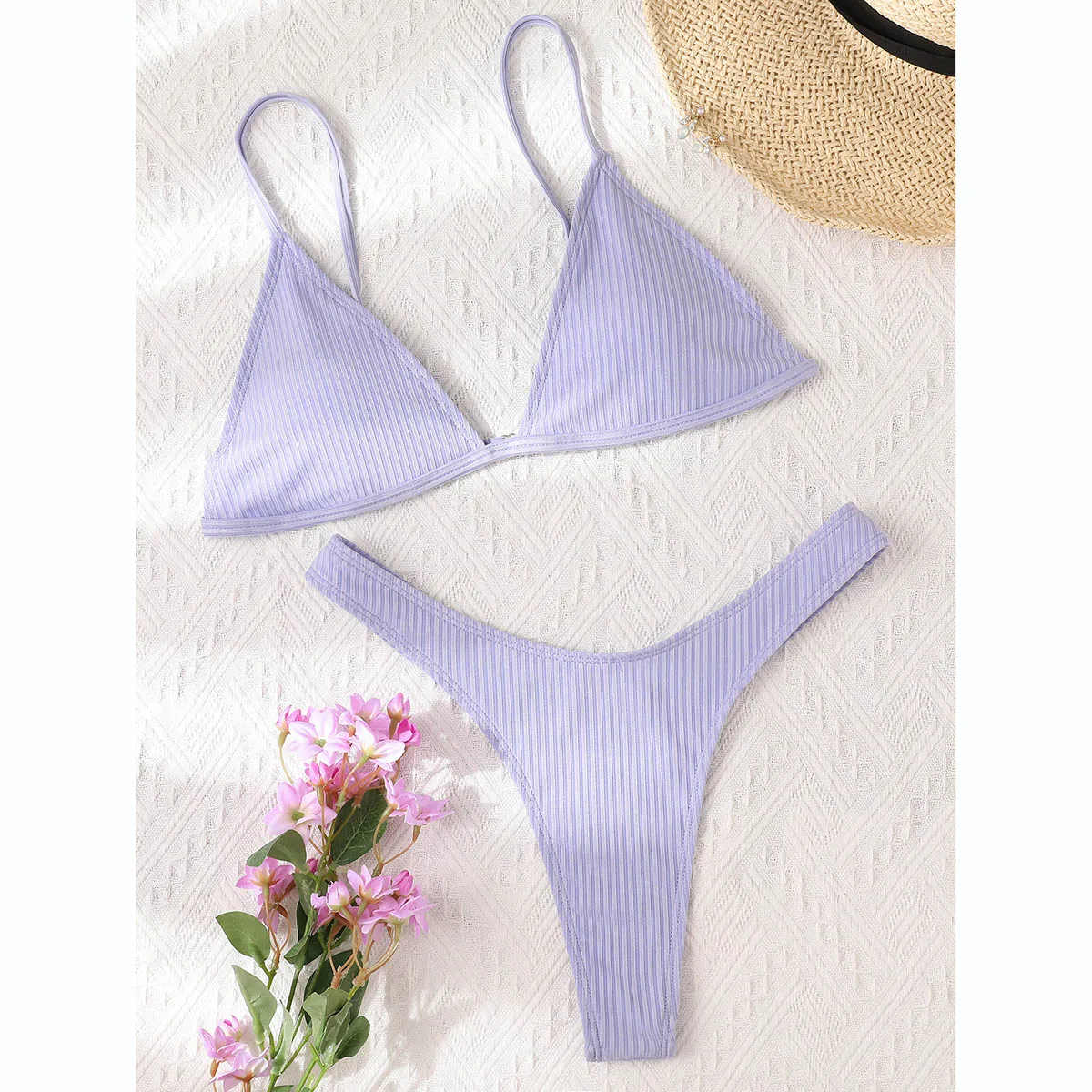 Купальник-бикини женский в рубчик, пикантный базовый купальный кост...
