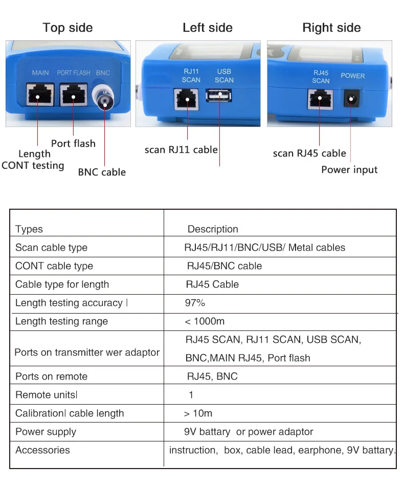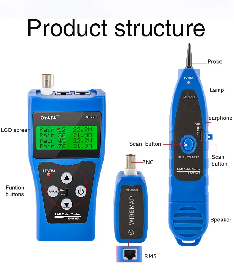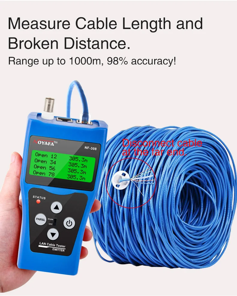 NOYAFA стандартное измерение сетевого кабеля LAN, длина кабеля, проверка целостности цепи, проводной трекер RJ45 RJ11 Ethernet USB BNC, тестер кабеля
