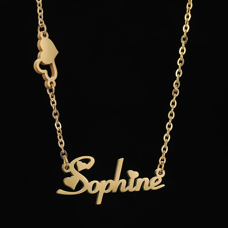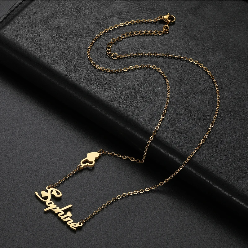 Ожерелье с именем на заказ, подвеска золотого цвета из нержавеющей ...