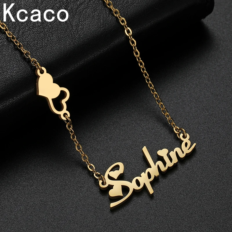 Ожерелье Kcaco с именем на заказ, цепочка из нержавеющей стали с надписью на заказ, с двумя сердцами, лучший подарок