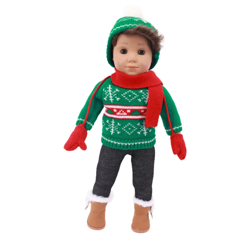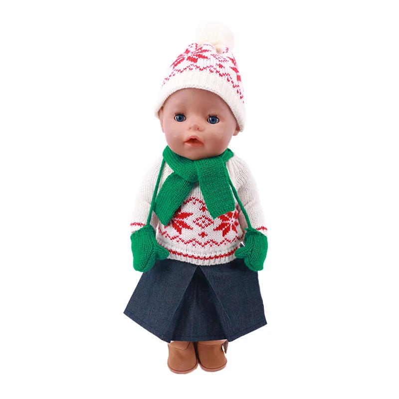 Бесплатная доставка, зимний свитер, штаны, шапка и шарф для 18-дюймовой девочки и 43 см, одежда для новорожденных, мальчик Логан, рождественские подарки