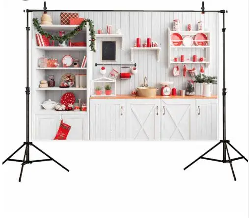 Рождественские фоны для фотосъемки, кухонный деревянный шкаф, белая...