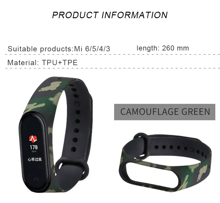 2021 Камуфляжный силиконовый ремешок подходит для Xiaomi Mi Band 3 ...