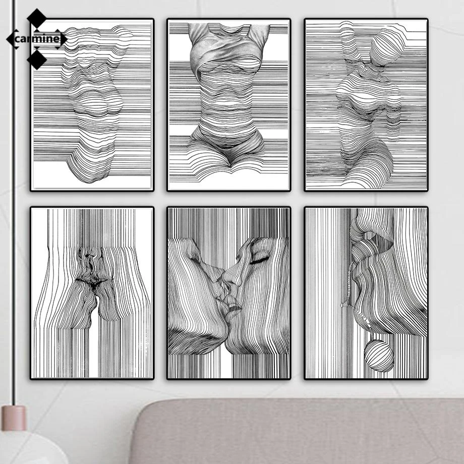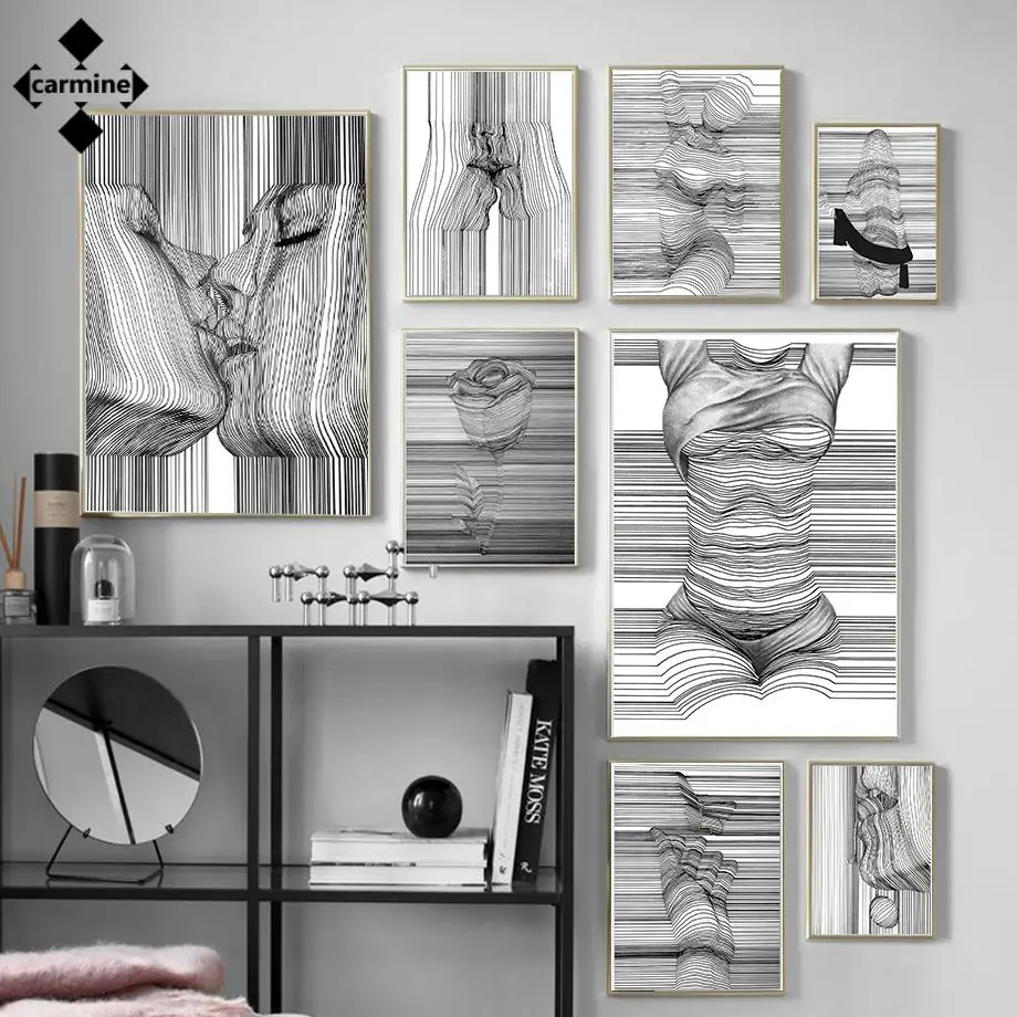 Сексуальное настенное искусство, холст, живопись, абстрактная линия, скандинавский плакат, обнаженное тело, черно-белое минималистичное изображение, картина для спальни, домашний декор
