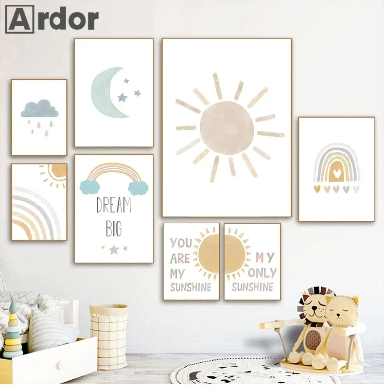Абстрактная Радуга Сердце плакат Солнце Луна Звезда облако Художественная печать сон большие цитаты Холст Картина скандинавский рисунок Детская комната Декор