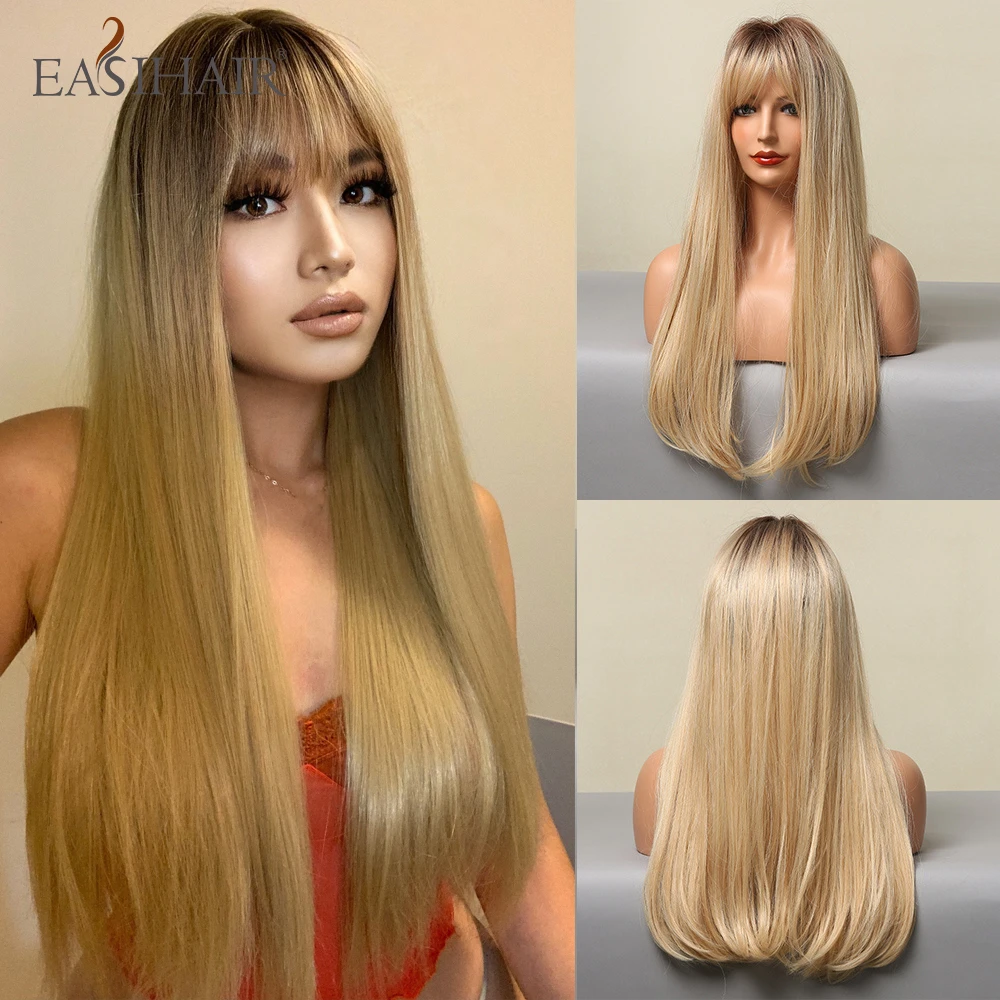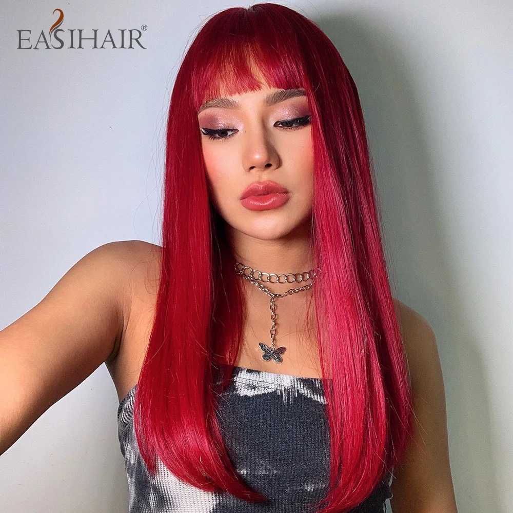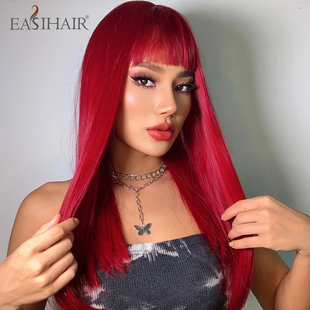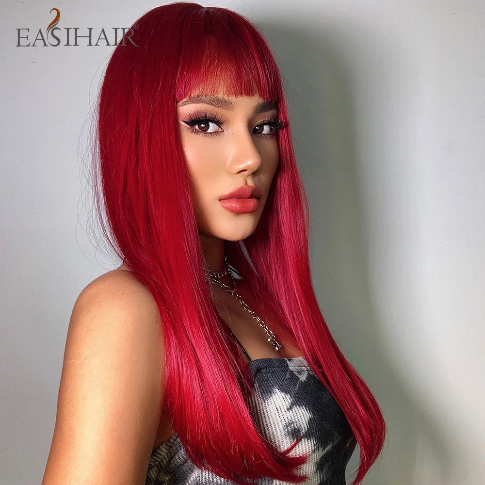 EASIHAIR длинные прямые винно-красные синтетические парики с челкой для женщин термостойкие натуральные волосы для ежедневного Хэллоуина Косплей Вечерние