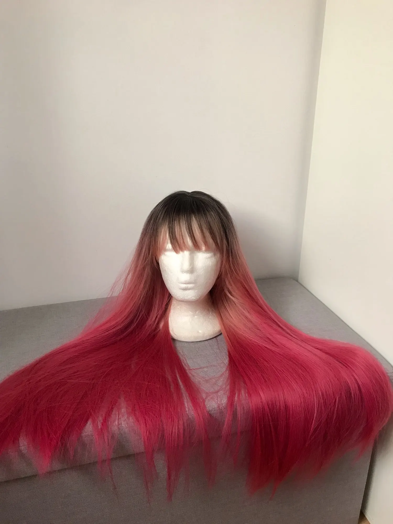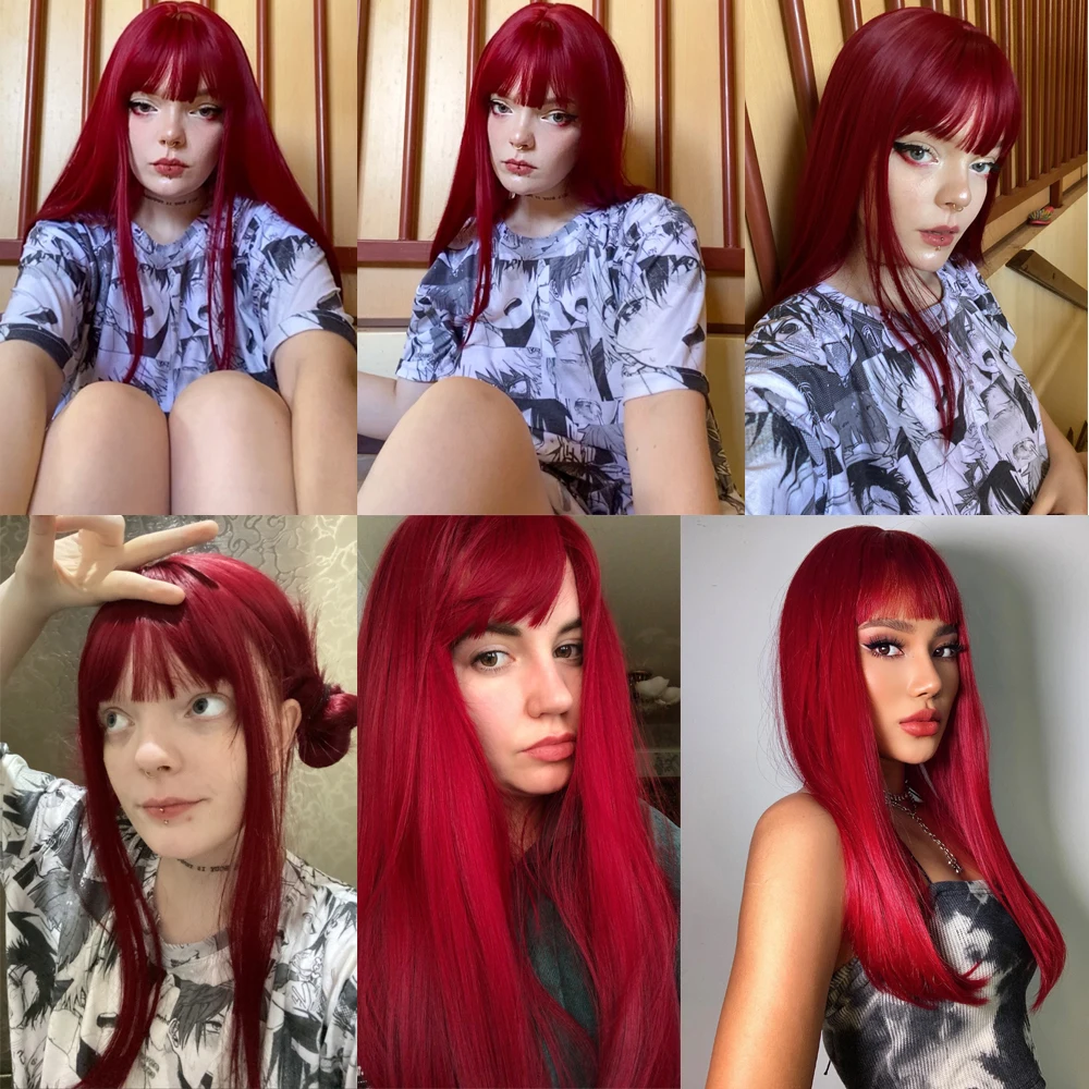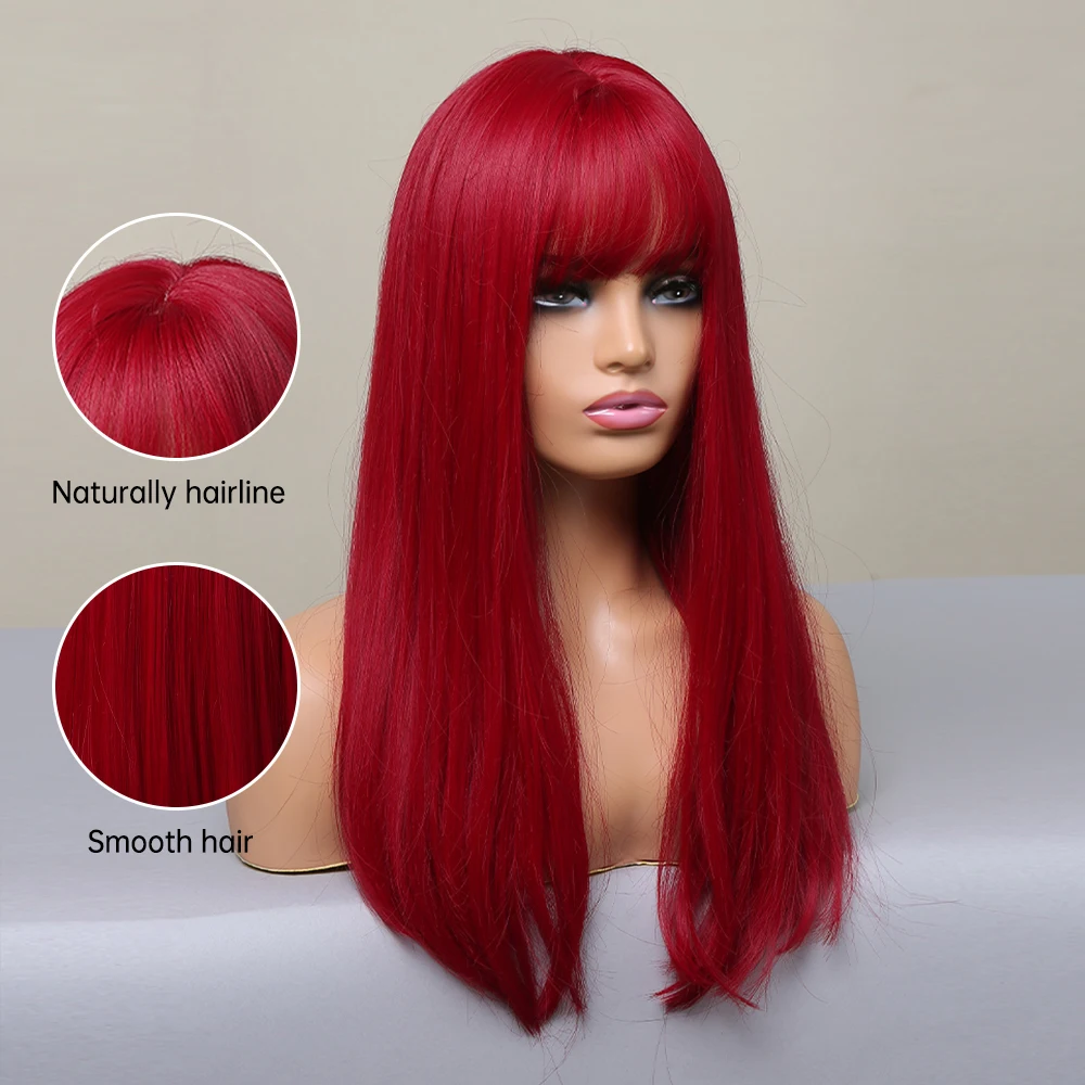 Длинные прямые винно-красные синтетические парики с челкой для женщин, жаропрочные натуральные волосы для ежедневного использования, косплея, Вечеринки На Хэллоуин