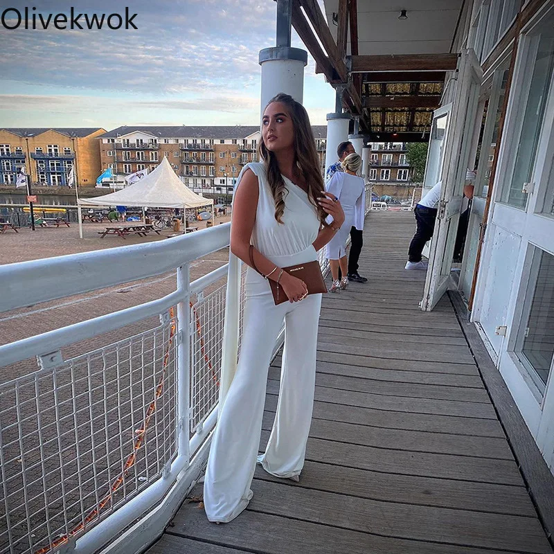 Женские однотонные комбинезоны Olivekwok, деловые Асимметричные комбинезоны в стиле пэчворк с длинным рукавом и косым воротником, Осенние Комбинезоны