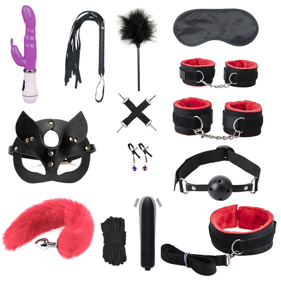 Сексуальный комплект для связывания в кроватке, набор для БДСМ, экзотические интимные игрушки для женщин, пары, наручники, кляп, маска для глаз, хвост, Анальная пробка, вибратор, секс-продукт