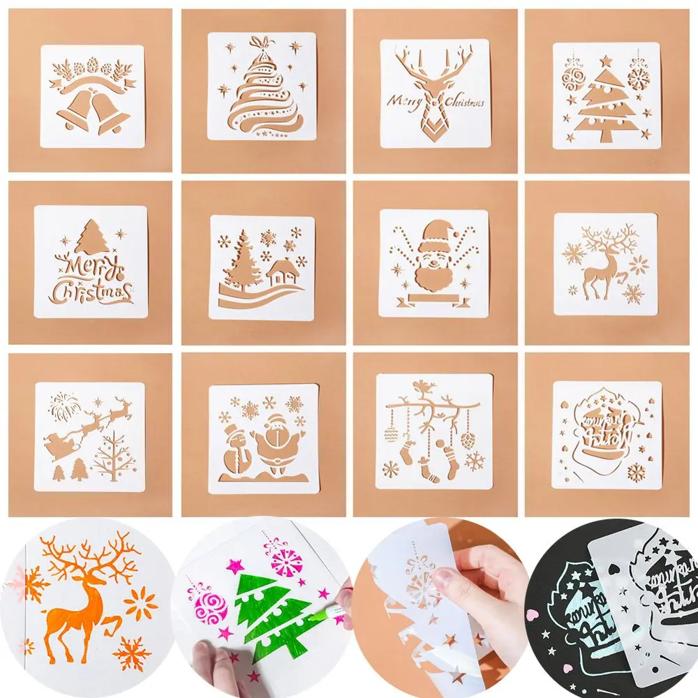 12 шт. пластиковый трафарет для рисования, рождественские темы, Сан...