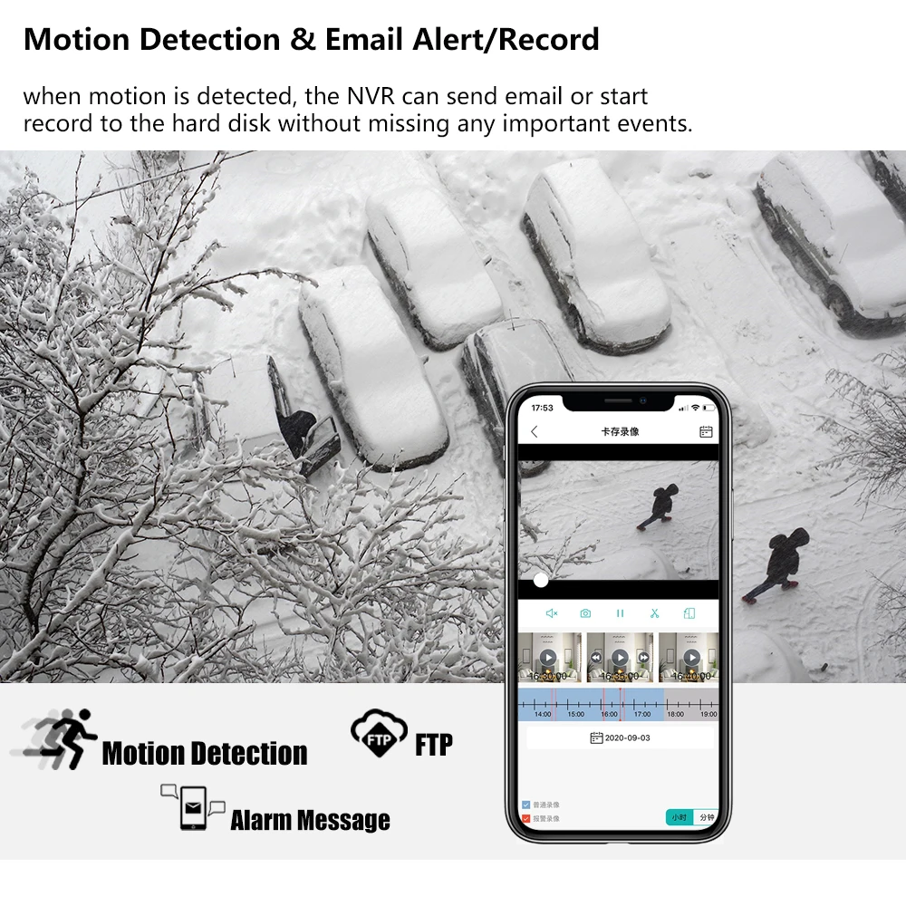 Обнаружение движения и оповещение по электронной почте/записьПри обнаружении движения, NVR может отправить электронное письмо или начать запись на жесткий диск, не пропуская каких-либо важных событий.