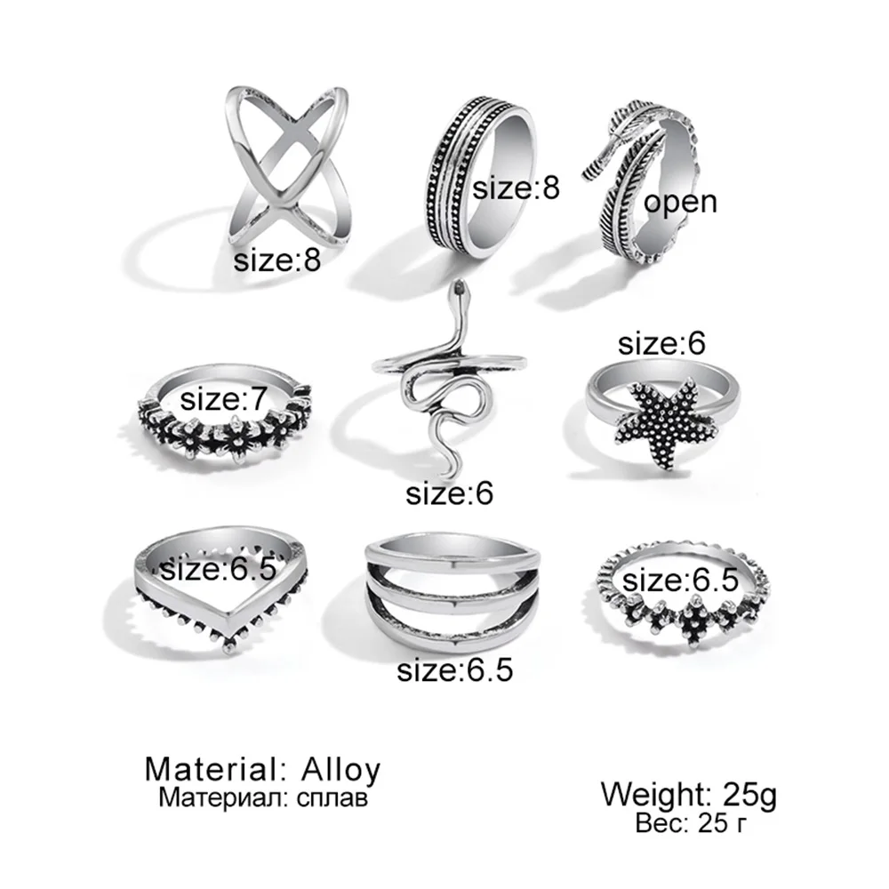 Женский комплект колец в богемном стиле, Винтажное кольцо на палец ...