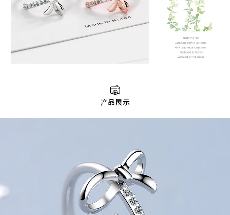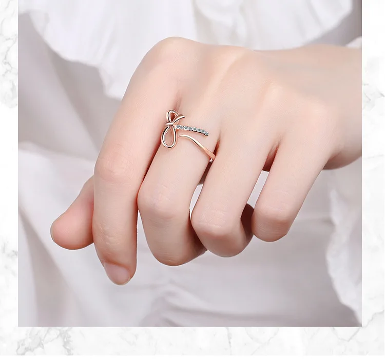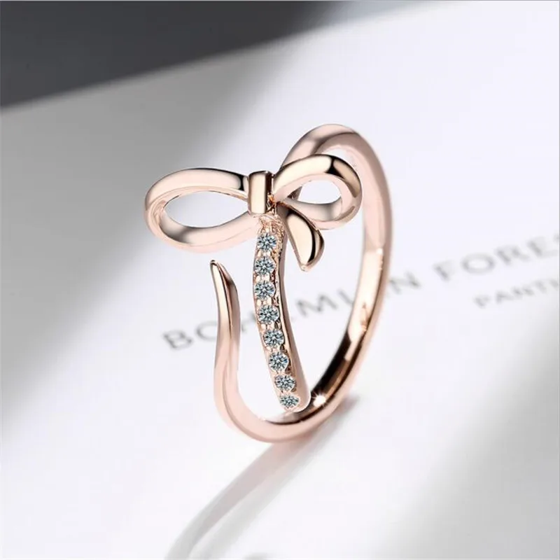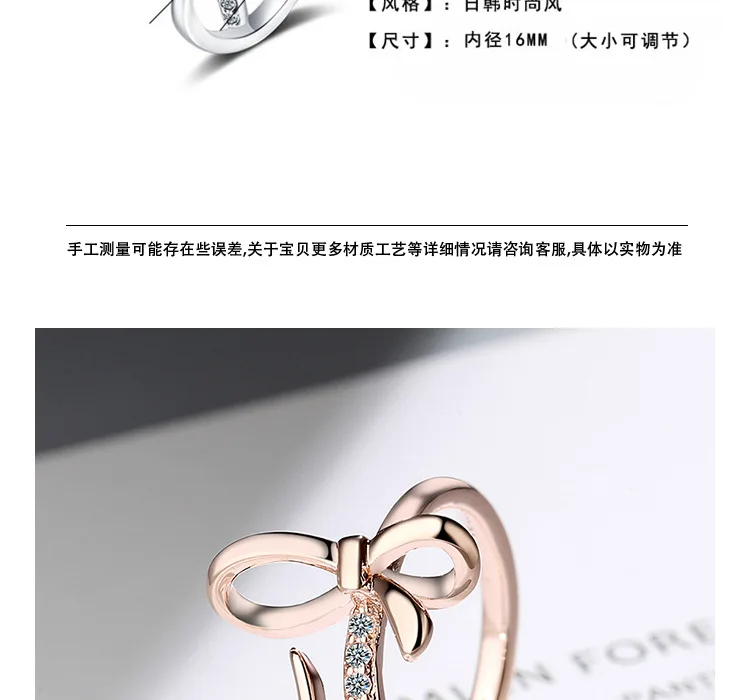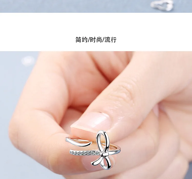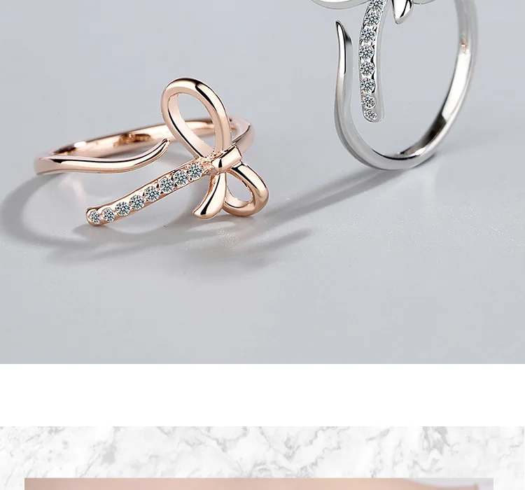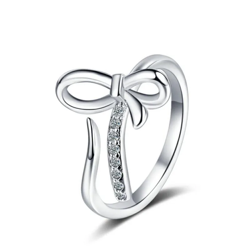 Новое поступление, маленькое свежее и милое посеребренное ювелирное изделие с бантом, изысканные открытые кольца с бриллиантами XZR039