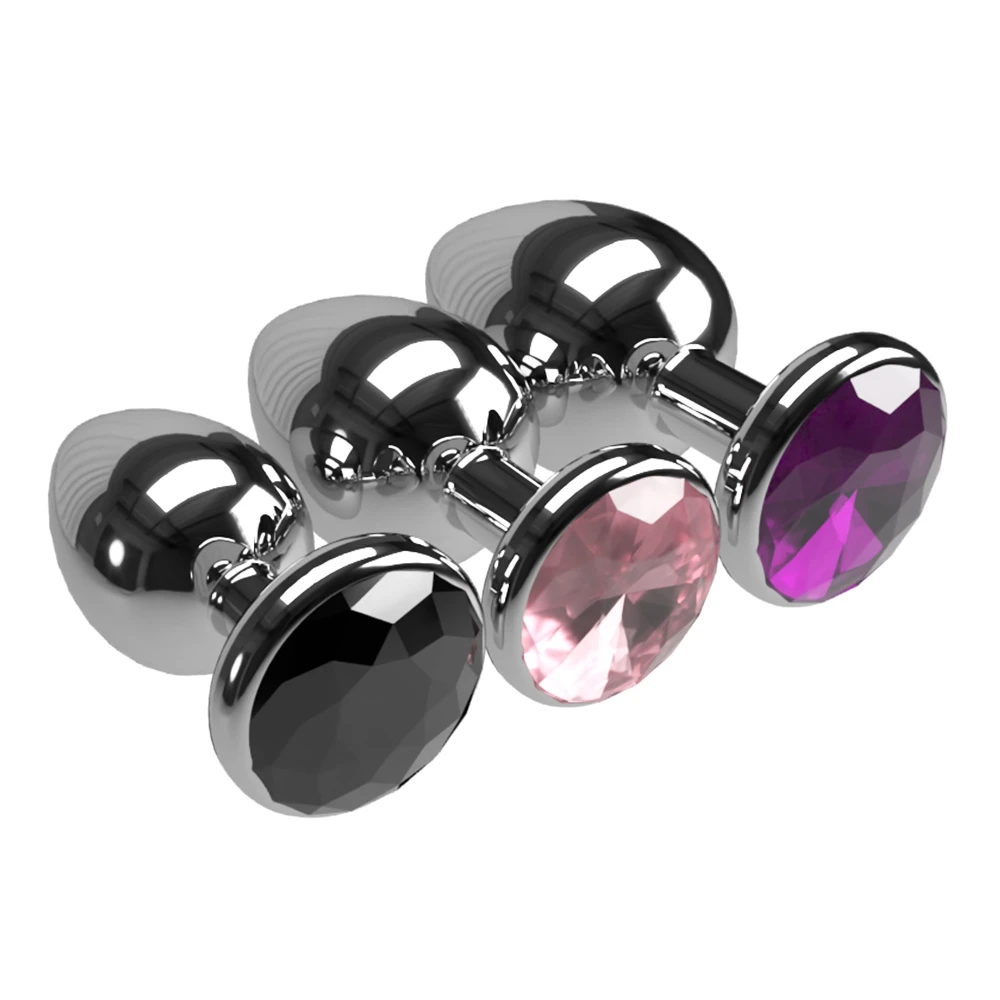 3 размеранабор, Анальная пробка, металлическая, кристальная, съемна...