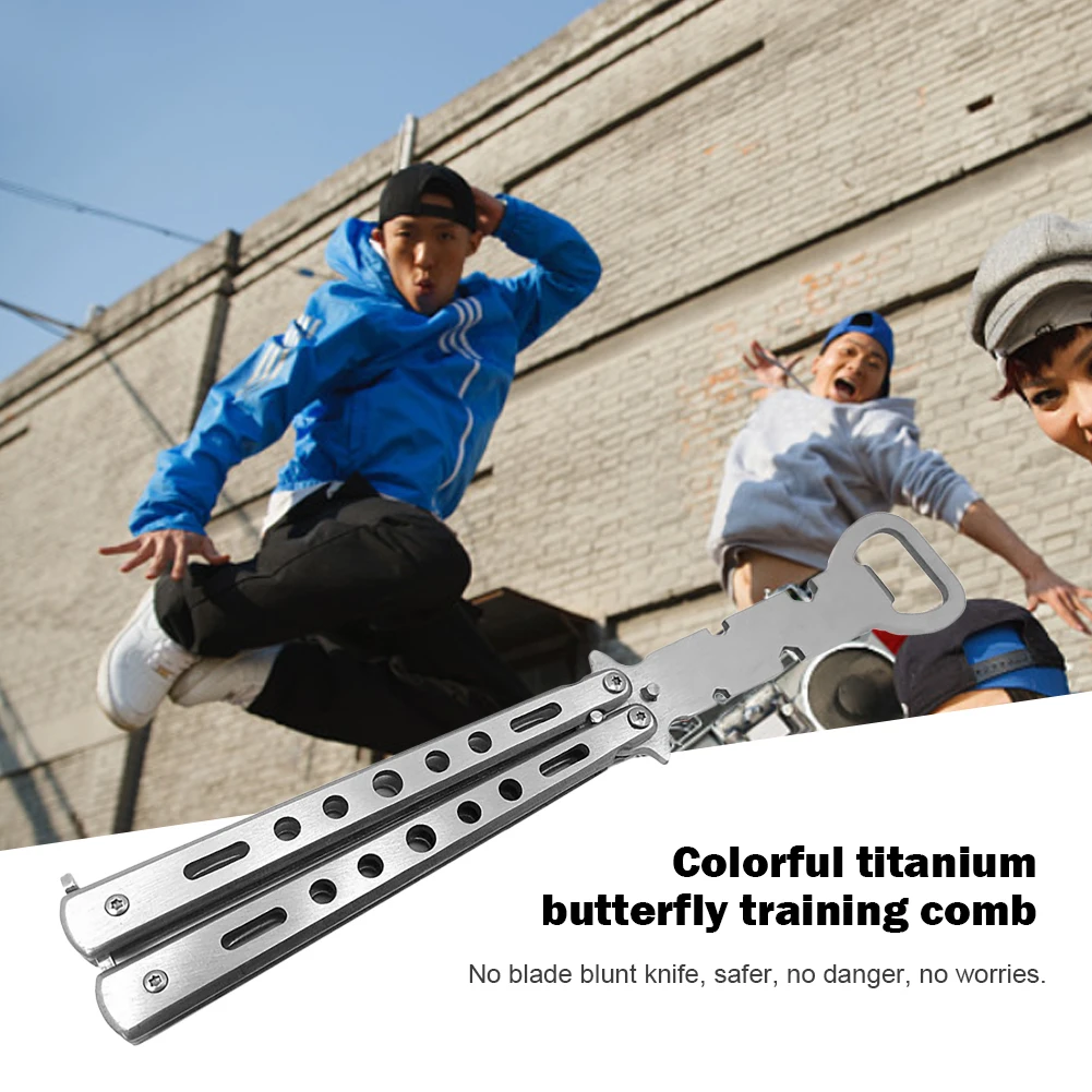 Складной нож-бабочка тренировочный нож из нержавеющей стали Учебный нож-бабочка открывалка для бутылок расческа для волос инструмент для укладки