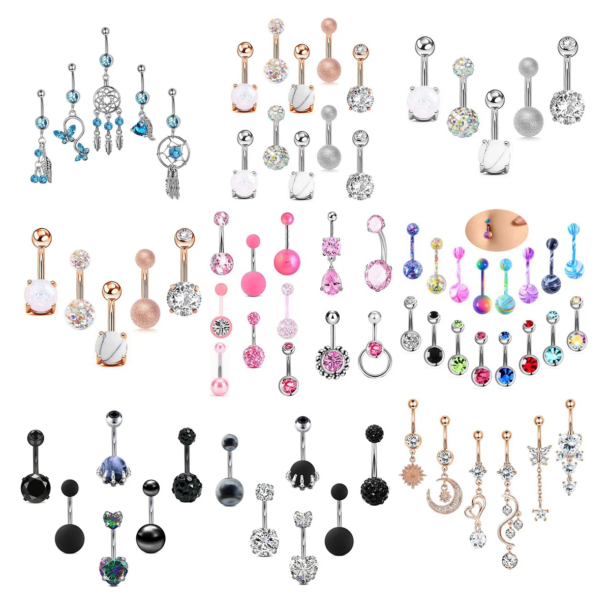 Набор колец для пупка 5-12 шт.компл., милые ювелирные украшения для пирсинга живота, 14 г, пикантные кольца на пупок, комплект украшений