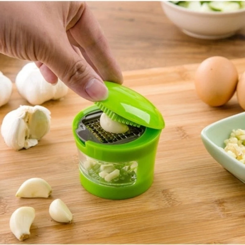 -Дно съемного контейнера также имеет микрорешетчатую поверхность для тертого чеснока. Закройте верхнюю часть и храните в холодильнике для следующего использования.