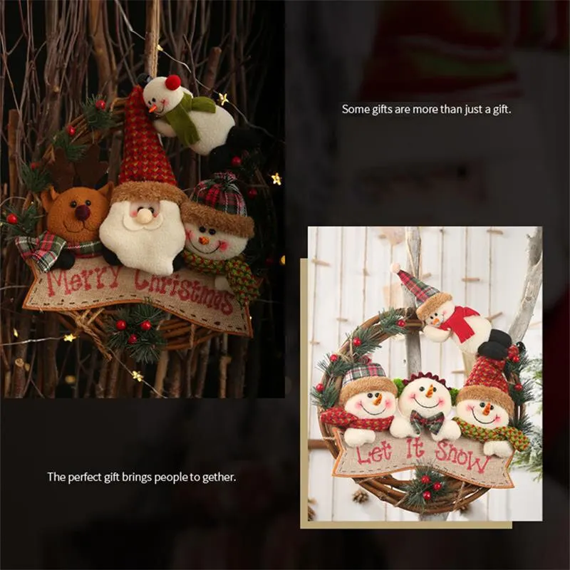 2021 рождественские украшения, Рождественский венок из ротанга, искусственный лось, лоза, кольцо, подвеска, Рождественское украшение для фотографий