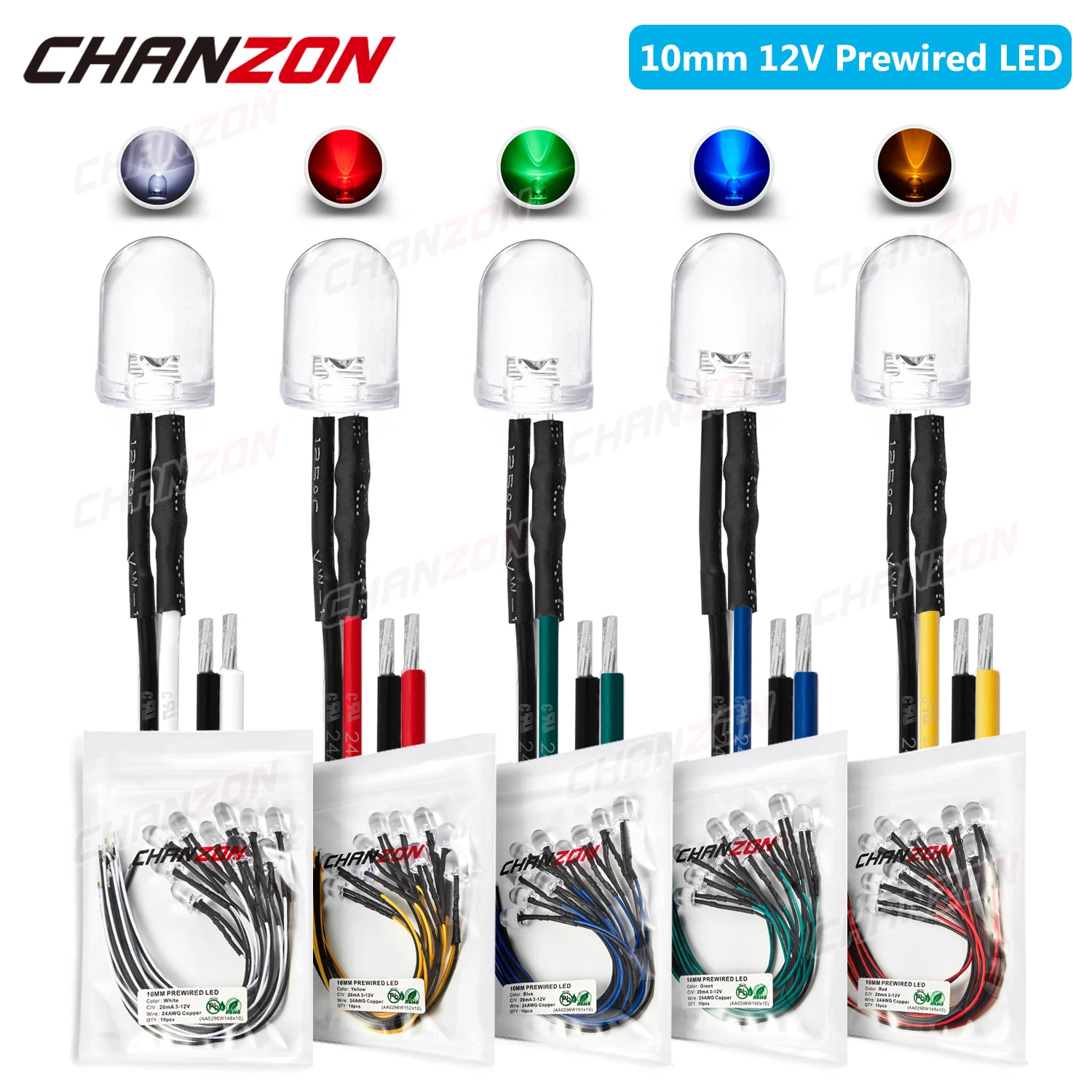 Бренд: CHANZONКоличество: 10 шт./упак.Объектив: диаметр 10 мм/прозрачныйЦвет излучения: белый/красный/зеленый/синий/желтый