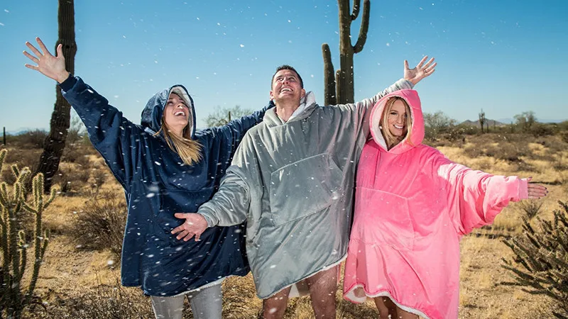 Зимние уличные одеяла с капюшоном и карманами, теплое мягкое худи, ...
