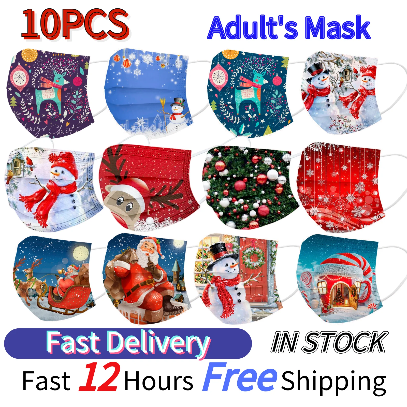10 шт., одноразовые маски в виде снеговика