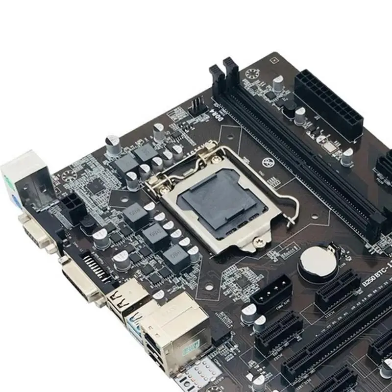 Материнская плата A B250Характеристики:Наименование товара: материнская плата для горнодобывающей машины BTCЦвет: черныйМатериал: PCB + металлРазмер: 23*18,5 смМодель продукта: B250 BTC 12PПроцессор: поддерживает все процессоры серии LGA1151Набор микросхем: с использованием высокоскоростного чипсета Intel B250Память: 2 * DDR4 DIMM слот памяти поддерживает память 2133/2400 МГц, максимальная поддержка 16 ГбЧип дисплея: графическая карта Intel HD Graphics coreВыход Дисплея: HDMI-совместимый/12 * USB3.0 к PCI-E 16XИнтеграция сети: 1 * микросхема сети RTL8111F 100MХранить аудио: Бортовой ALC6626 канал высокой точности аудио контроллерИнтерфейс ввода/вывода:2 * USB3.0 интерфейс4 * Интерфейс USB2.01 * HDMI-совместимый интерфейс1 * RJ45 гигабитный сетевой интерфейсАудиоинтерфейс 1*3 в 11 * интерфейс PS/2Встроенный интерфейс ввода/вывода1 * USB3.0 pin2 * USB2.0 pin1 * COM pin1 * Аудио передний аудио pin1 * F-PANEL кнопки и указатели на передней панелиBIOS: AMI 64 Мб флэш-памятьТип источника питания: поддержка ATX 24P + ATX 4P 12V + ATX 6P Характеристика:1. Интерфейс USB3.0: мгновенно испытайте скорость передачи данных в 10 раз быстрее, чем USB2.0 через функцию plug and play.2. Поддержка памяти 16 Гб, значительно повышает производительность материнской платы.3. Тепловыделение высокой энергии, не боится высокой температуры, увеличения, сильной конструкции рассеивания тепла, чтобы обеспечить полную скорость работы процессора. Материнская плата B B250Спецификация:Наименование товара: материнская плата BTCЦвет: черныйМатериал: PCB + металлРазмер: 29,5x19 смТип памяти: DDR4Слот для памяти: 2 × DDR4Частота: 2133/2400/2800/3000 МГцПамять: максимум 16 гНабор микросхем: Intel B250Тип гнезда ЦП: LGA 1151Разъем питания: 1*4pin, 1*24pinРежим питания: 3 фазы, 2 гнезда вентилятора ЦП Слот расширения:1 * графический слот PCI-E X1611 * PCI-E X1 графический слот2 * USB2.0 булавки1 * USB3.0 pin1 * COM pin2*4p квадратный порт питания4 * порт SATA3.0 Порт ввода/вывода:2 * PS/2 порта клавиатуры и мыши универсальный порт1 * RJ45 100 м Ethernet порт1 * DVI выход высокой четкости1 * VGA2 * Порт USB 3,04 * USB 2,0 порт Feature1: скорость с 12 разъемами PCIe и только одним разъемом питанияОсобенности 2: разделяет 12 слотов PCIe на 3 группыFeature3: 5X Защита III аппаратный уровень гарантии с безопасным слотным ядром.Feature4: защита LAN и защита от перенапряженияFeature5: обнаружение состояния слота PCIeFeature6: поддерживает до шести портов USB 3,0Feature7: поддерживает до шести портов SATA 6 Гбит/с, скорость полосы PCIe 3,0