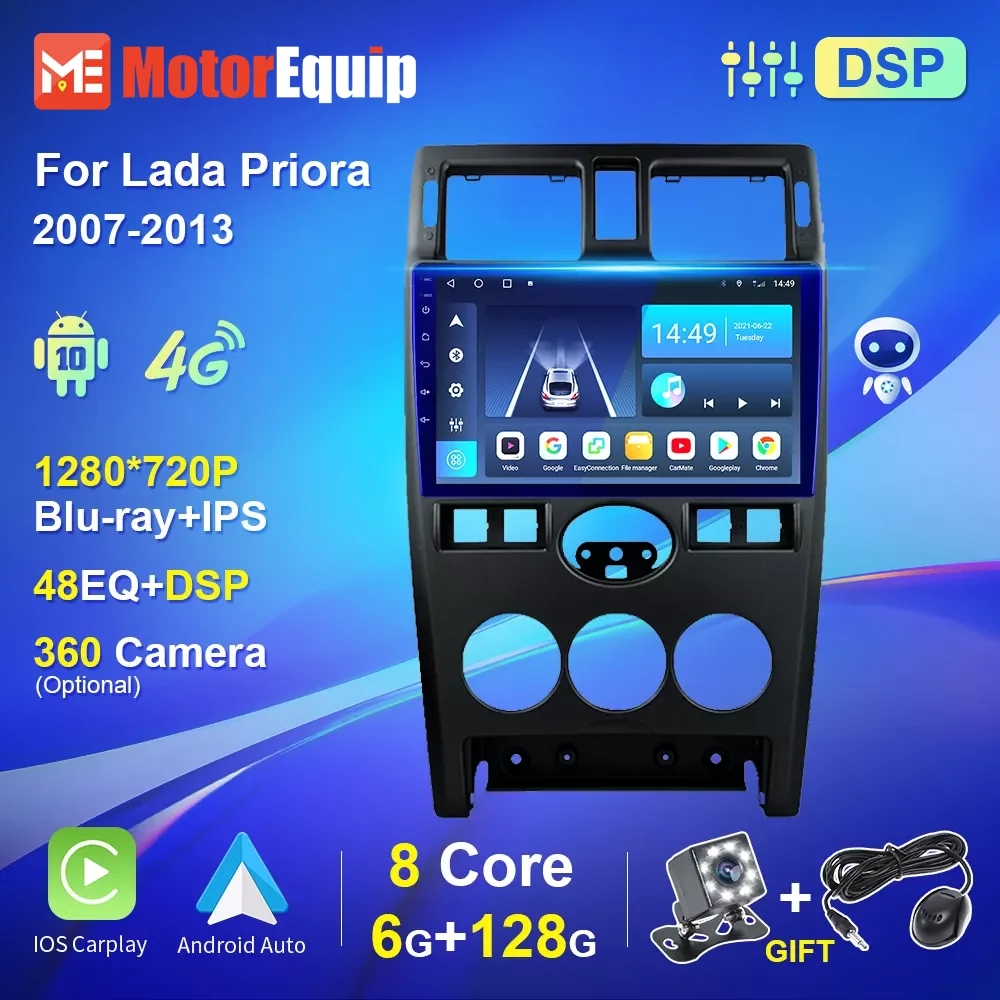 Автомагнитола на Android, мультимедийный плеер для Lada Priora 2007 2008-2013, мультимедийный плеер с навигацией, GPS, Carplay, Wi-Fi, разъем 2din