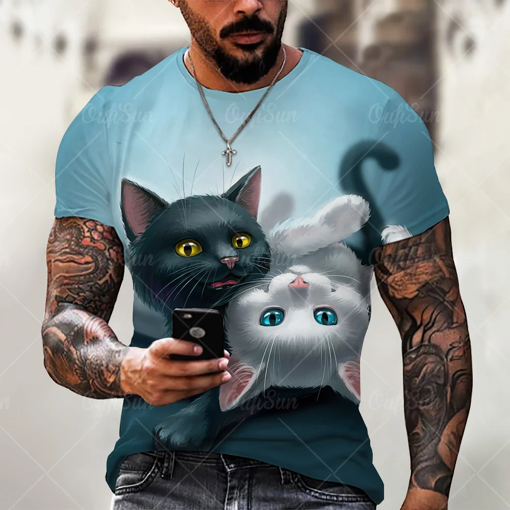 Футболка унисекс с 3D-принтом, милая дышащая спортивная футболка с круглым вырезом, свободного покроя, в стиле оверсайз