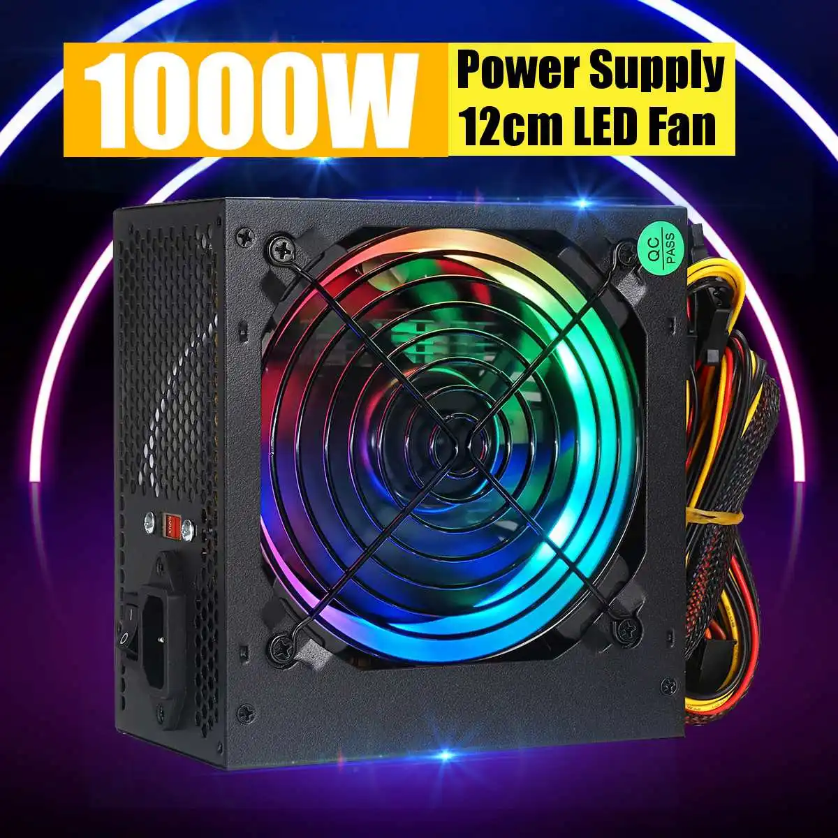 Блок питания, макс. 1000 Вт, 12 см, многоцветный светодиодный rgb вентилятор, 24 контакта, PCI SATA 12 В, блок питания для настольного компьютера, игровой блок питания