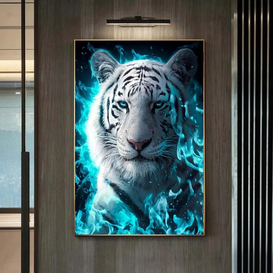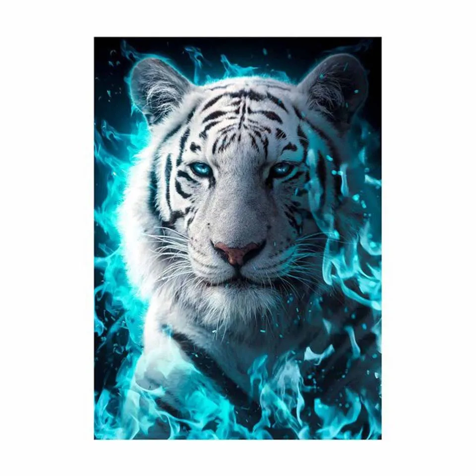 Алмазная живопись большого размера 5d, черно-белая голова тигра, ал...