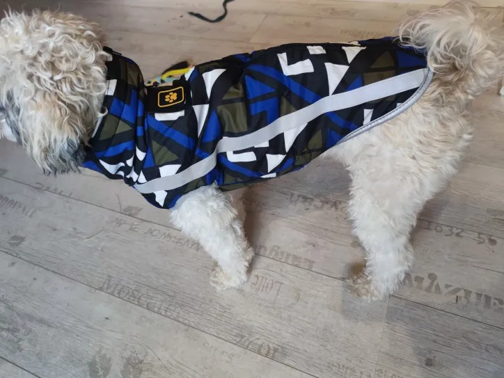 Куртка подошла по размеру. Смотрел по таблице. качество хорошее. Тепло собаке или нет, сказать не могу. Пес ничего не сказал :)