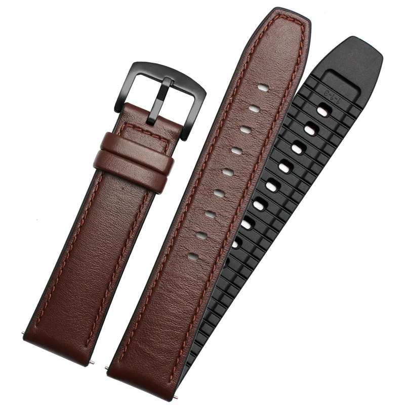 Ремешок для часов BEAFIRY, из натуральной кожи и силиконовой резины...