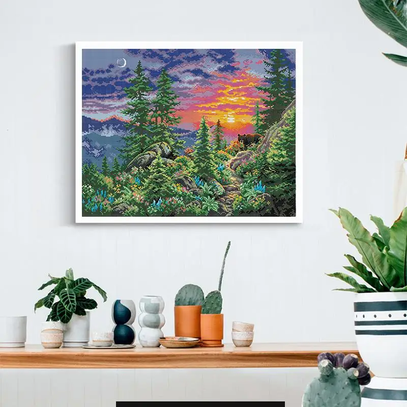 Закат свечение пейзаж подсчета крестиком комплект 14CT 11CT Счетный холст печать Рукоделие Набор украшение дома ремесло набор подарки