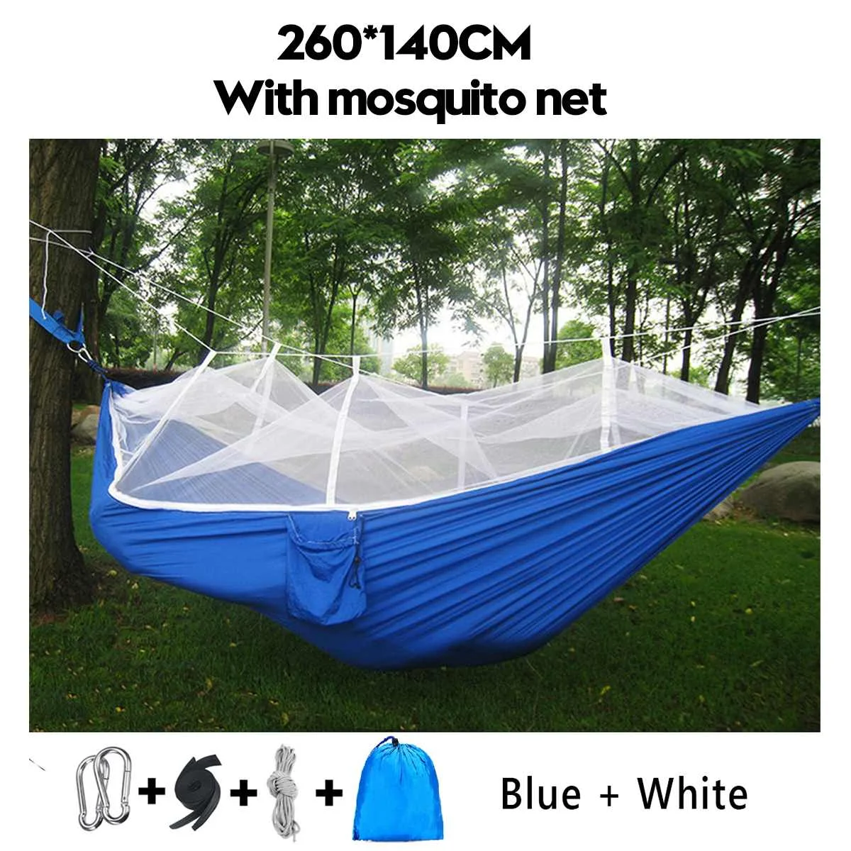 Портативный туристический гамак, на 1-2 человек, вес 300 кг, с москитной сеткой, подвесная кровать, качели для сна, для охоты, с сильной нагрузкой